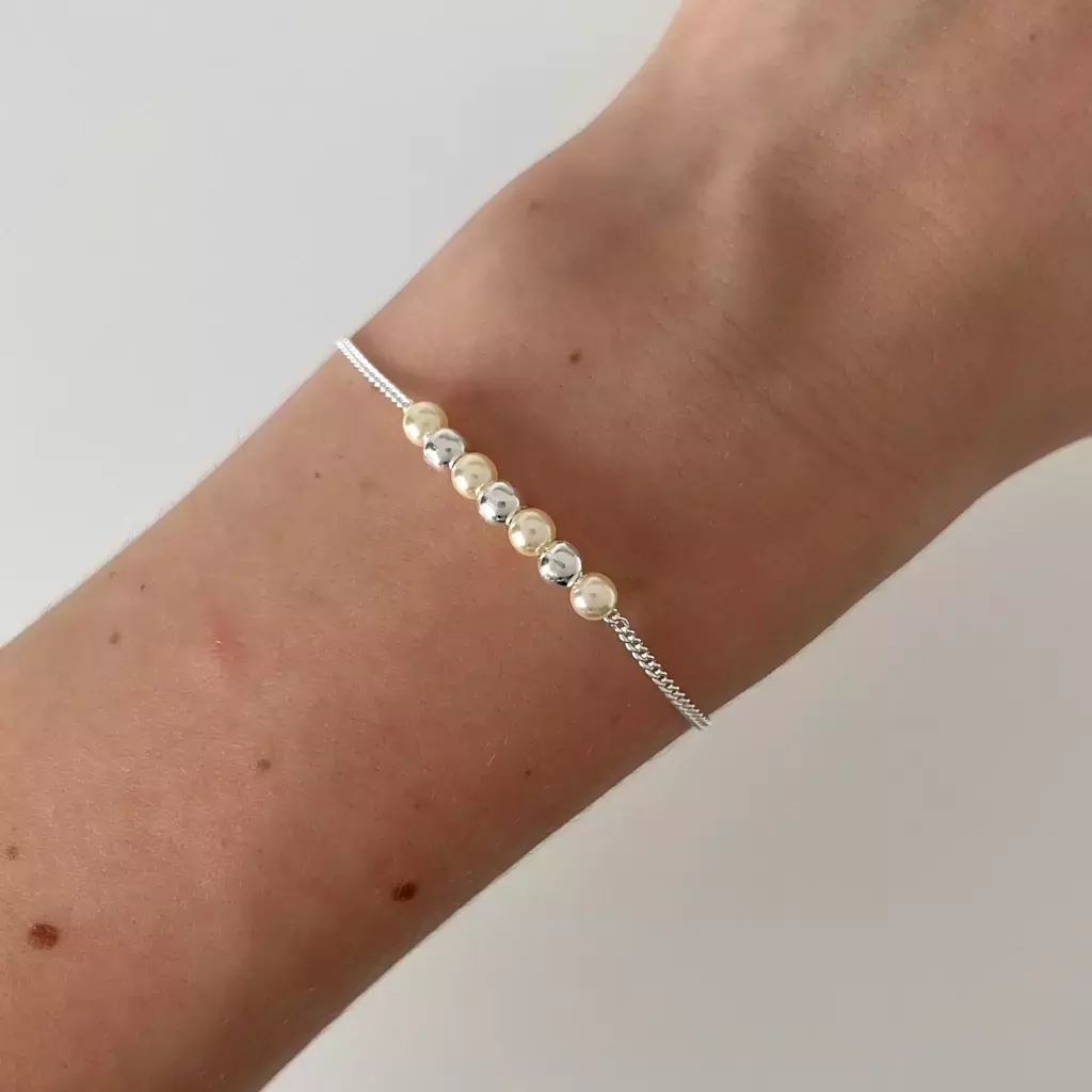 Descubra a beleza única da Pulseira Pérolas e Bolinhas, uma joia feita com prata 925 legítima que une delicadeza e charme para realçar seu estilo com personalidade e requinte.